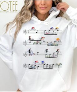 Shop our exclusive Cycling Music Note t-shirt collection. Express your passion for cycling and music with our custom-printed designs. Perfect for any cycling enthusiast.