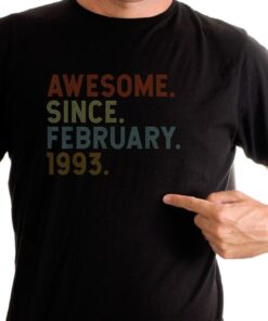 Celebrate your 30th birthday in style with our “30 Years Old Awesome Since February 1993” t-shirt! Made from high-quality materials and featuring a unique design, this shirt is the perfect way to showcase your awesomeness on your special day. Shop now and make your birthday one to remember!